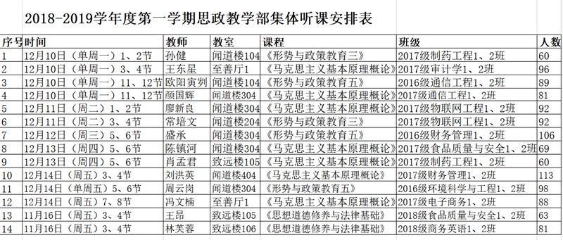 为促进我教学部课程建设,进一步提高思政理论教学部教学质量,完善教学部教学监控管理体系,思政理论教学部在本学期伊始就制定《厦门华厦学院思想政治理论教学部教师听课评课制度》,并有序组织全体教师深入教学班级随堂听课活动,共有68人次参加了14名任课教师课程教学随堂听课活动。